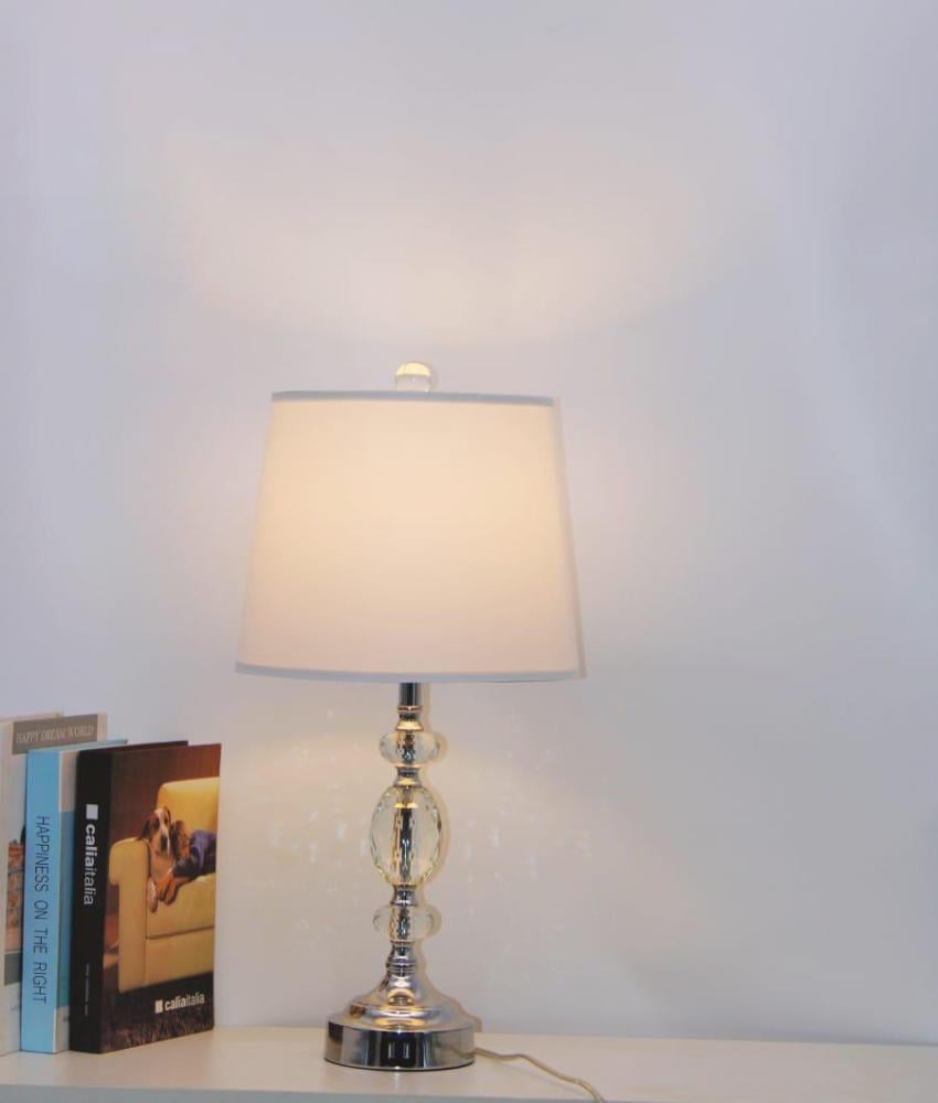 عززي ديكور منزلك بلمسة فاخرة مع مصباح الطّاولة الفريد هذا. مصمم بقاعدة كريستال بتصميم فريد يعزّز من رونقه، يمكن استخدامه فوق طاولة التزيين غرفة النوم أو فوق طاولة جانبية للمسة أنيقة، يحتاج لمبة E27.