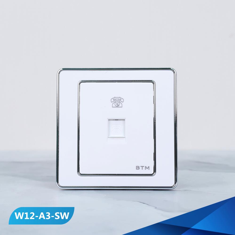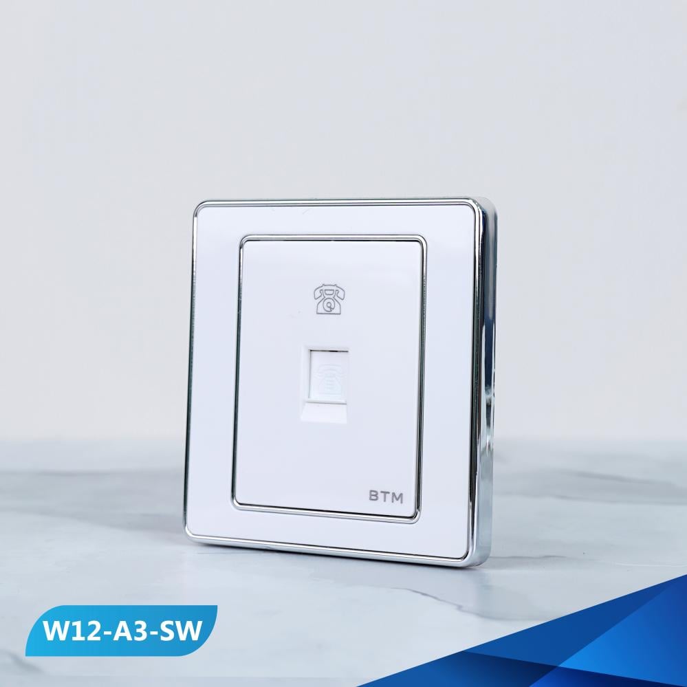 فيش منفذ تلفون أرضي مفرد بيانو باللون الأبيض والفضي الفاخر , مناسب للاستخدام الفنادق و المطاعم و الكوفيهات و بتصميم عصري فاخر عالي الجودة.