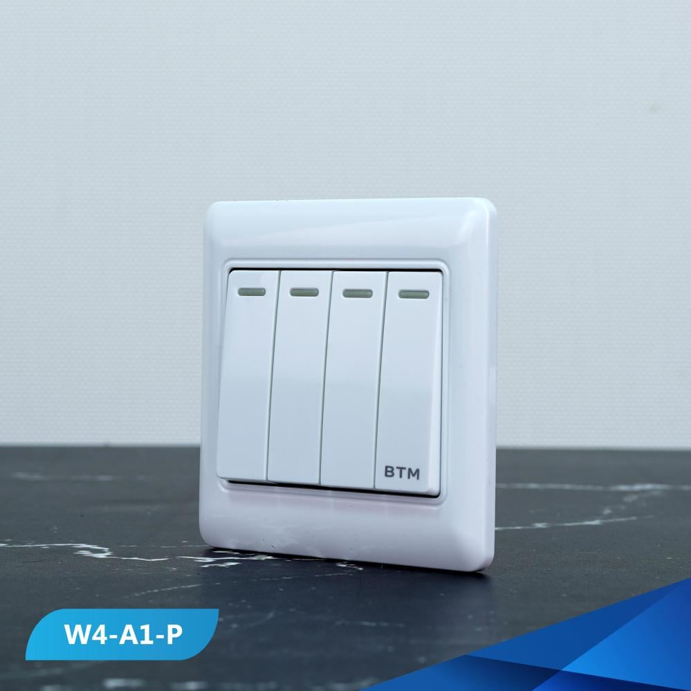 مفتاح إضاءة رباعي 10 أمبير باللون الأبيض المبروم الفاخر , مناسب للاستخدام الفنادق والمنازل بتصميم عصري فاخر عالي الجودة.