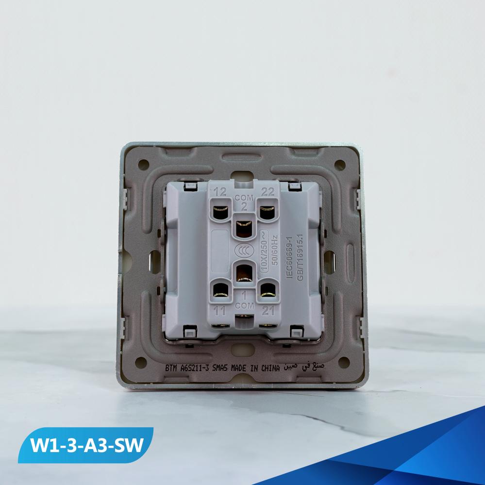 مفتاح إضاءة دركسون 3 مسمار مفرد 10 أمبير باللون الأبيض والفضي الفاخر , مناسب للاستخدام الفنادق والمنازل بتصميم عصري فاخر عالي الجودة.