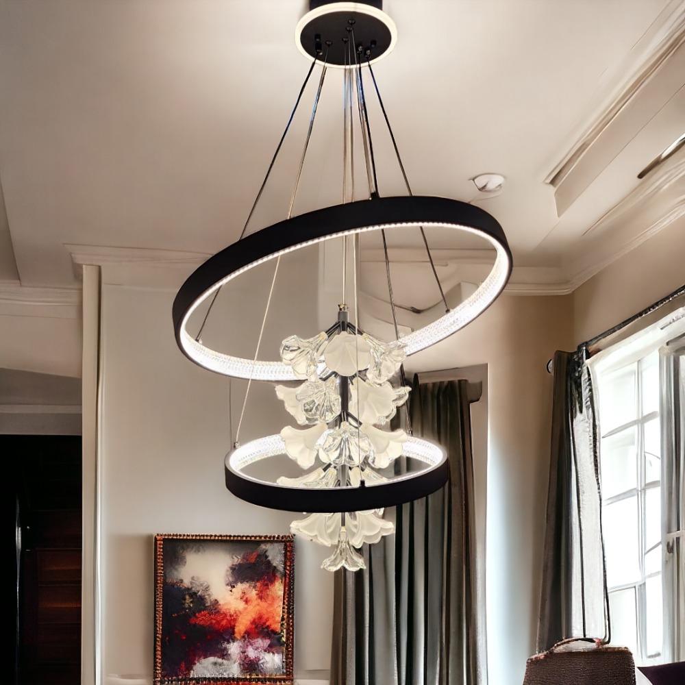 احصل على ثريا ليد مودرن واستمتع بالتصميم الفريد والجودة العالية. بفضل الإضاءة الليد المدمجة، لن تحتاج إلى شراء إضاءة خارجية إضافية. تأتي الثريا أيضًا بضمان لمدة سنتين، مما يضمن لك جودة المنتج وراحة البال. تصميمها المميز يجعلها مناسبة لمختلف الغرف، مما يضفي لمسة من الأناقة والتميز على منزلك.