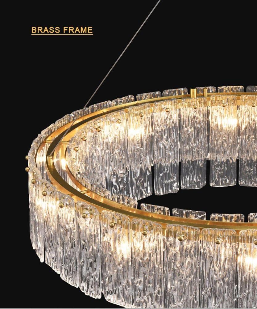 - الزجاج: قطع زجاجية شفافة بتصميم مموج كأنها كريستال متجمد، تعكس الإضاءة بشكل جذاب يخطف الأنظار ✨